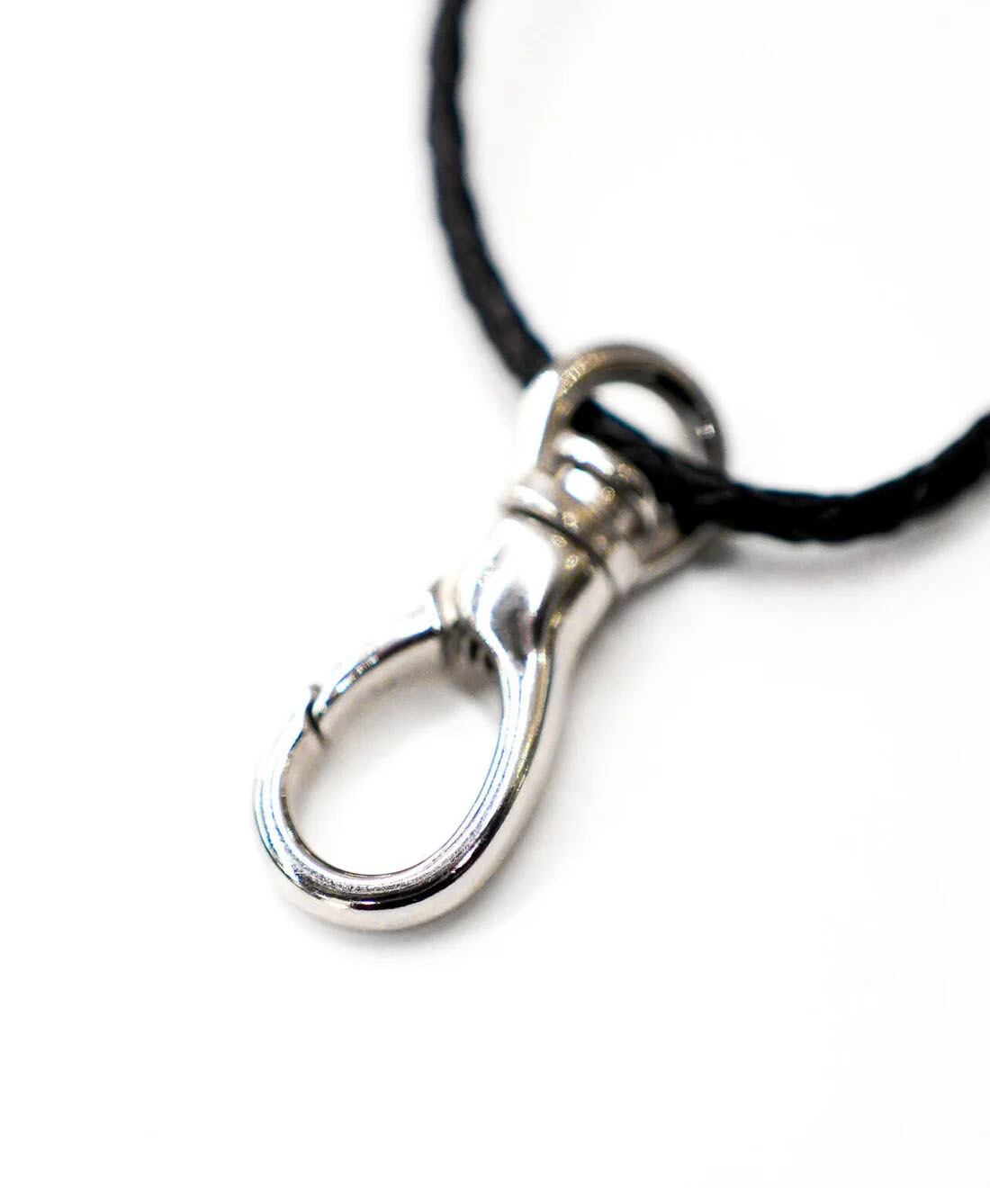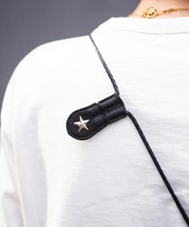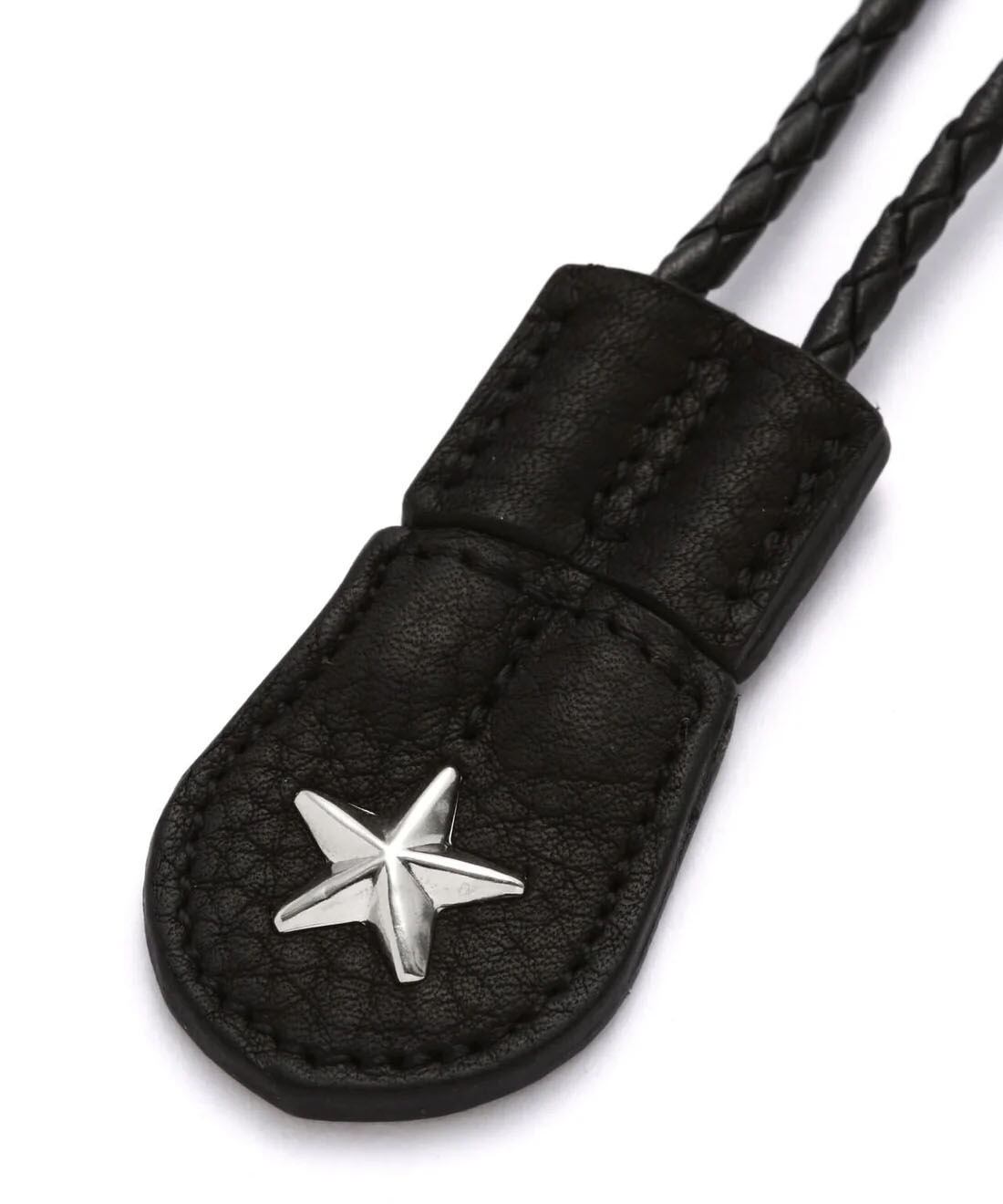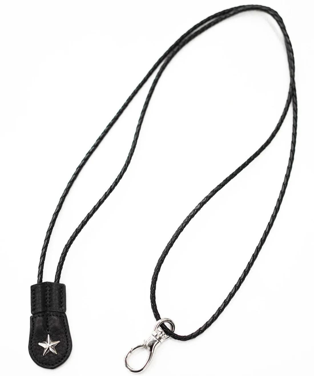 手作業で編みこまれたレザーの丸紐を使った調整可能なレザーストラップ。