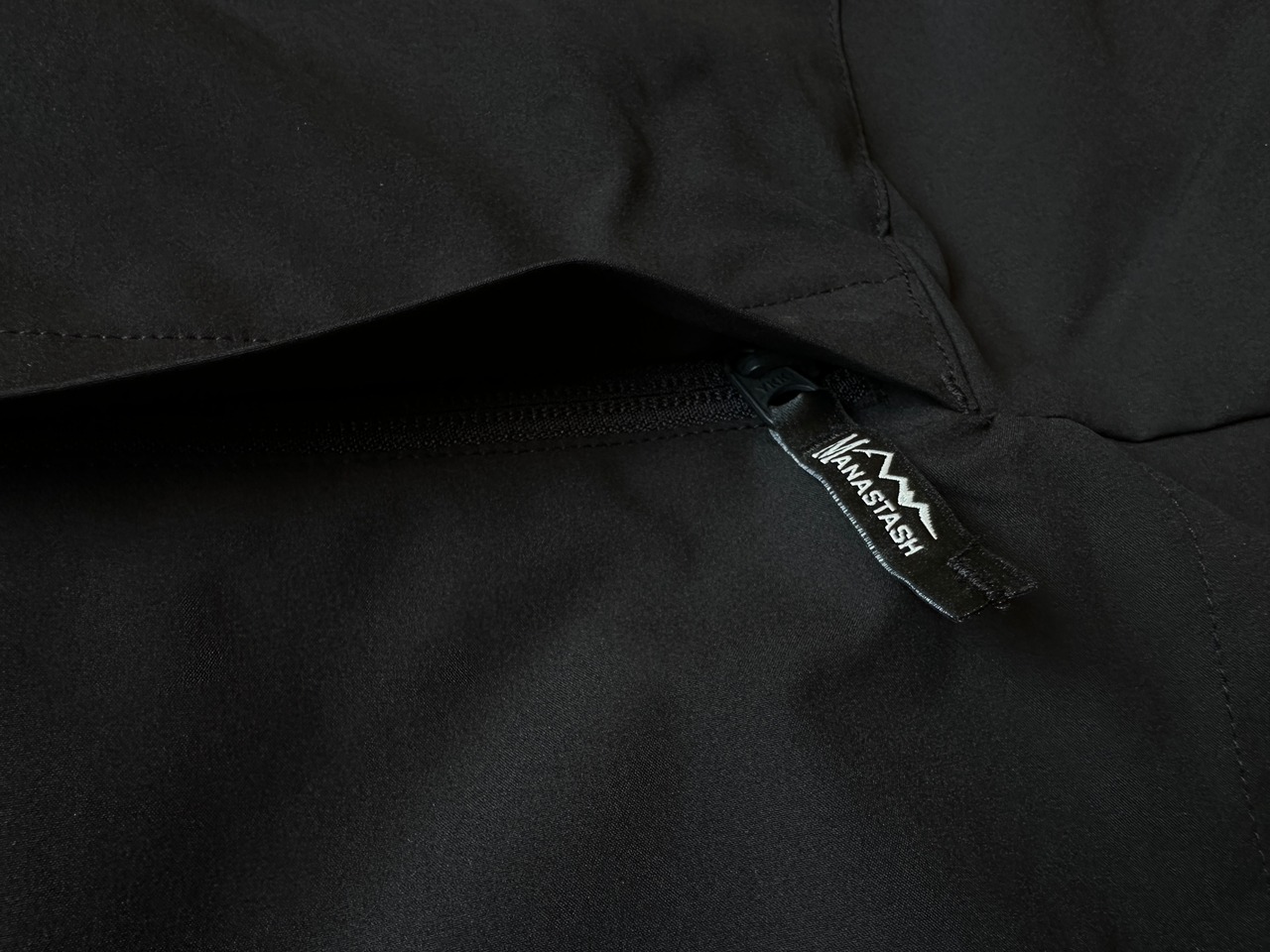 ・布帛面にはダブルジップポケット×2、後ポケット×1、フリース面も左胸ポケット×1、腰ポケット×2あるので、収納力は抜群。