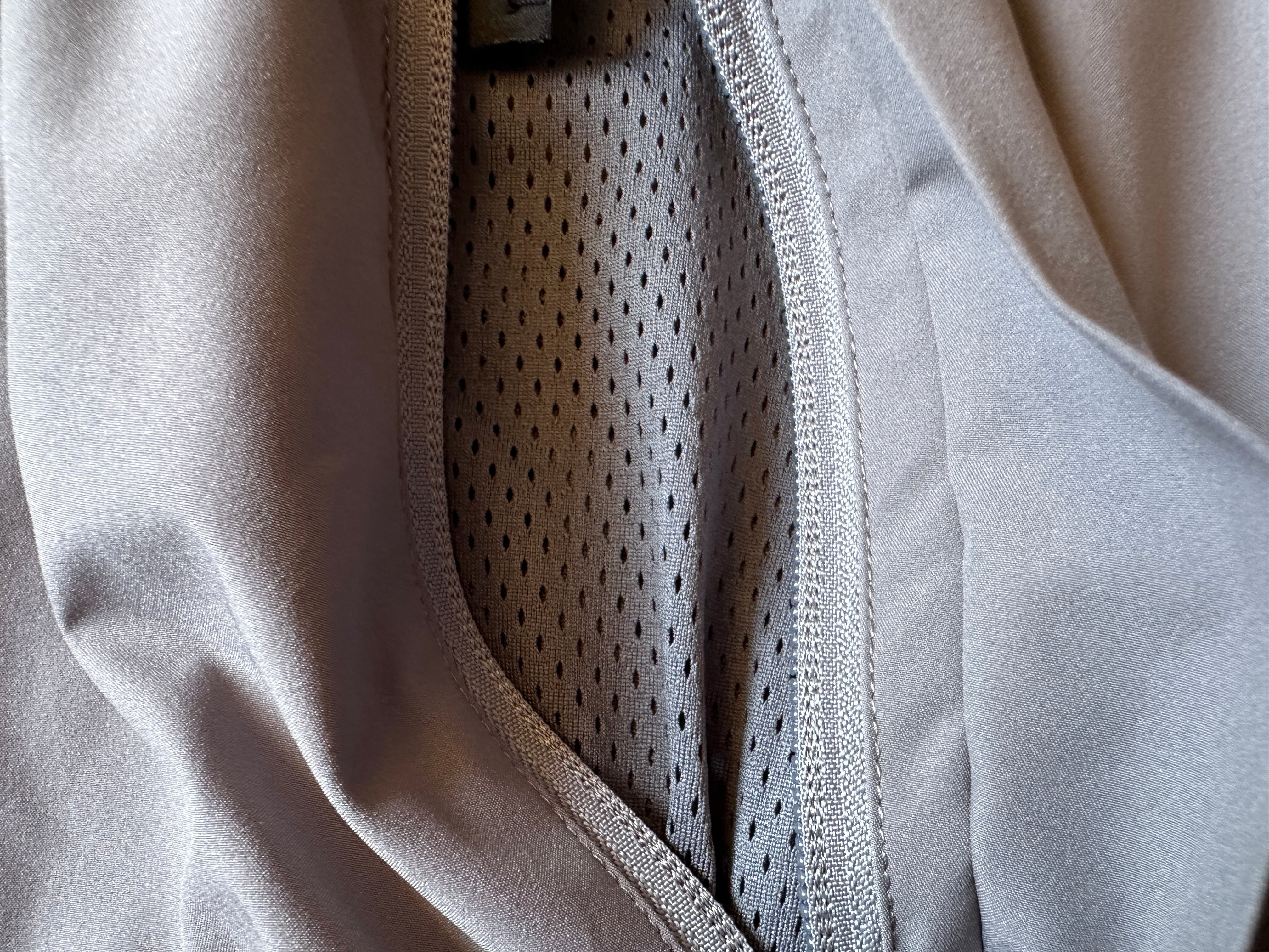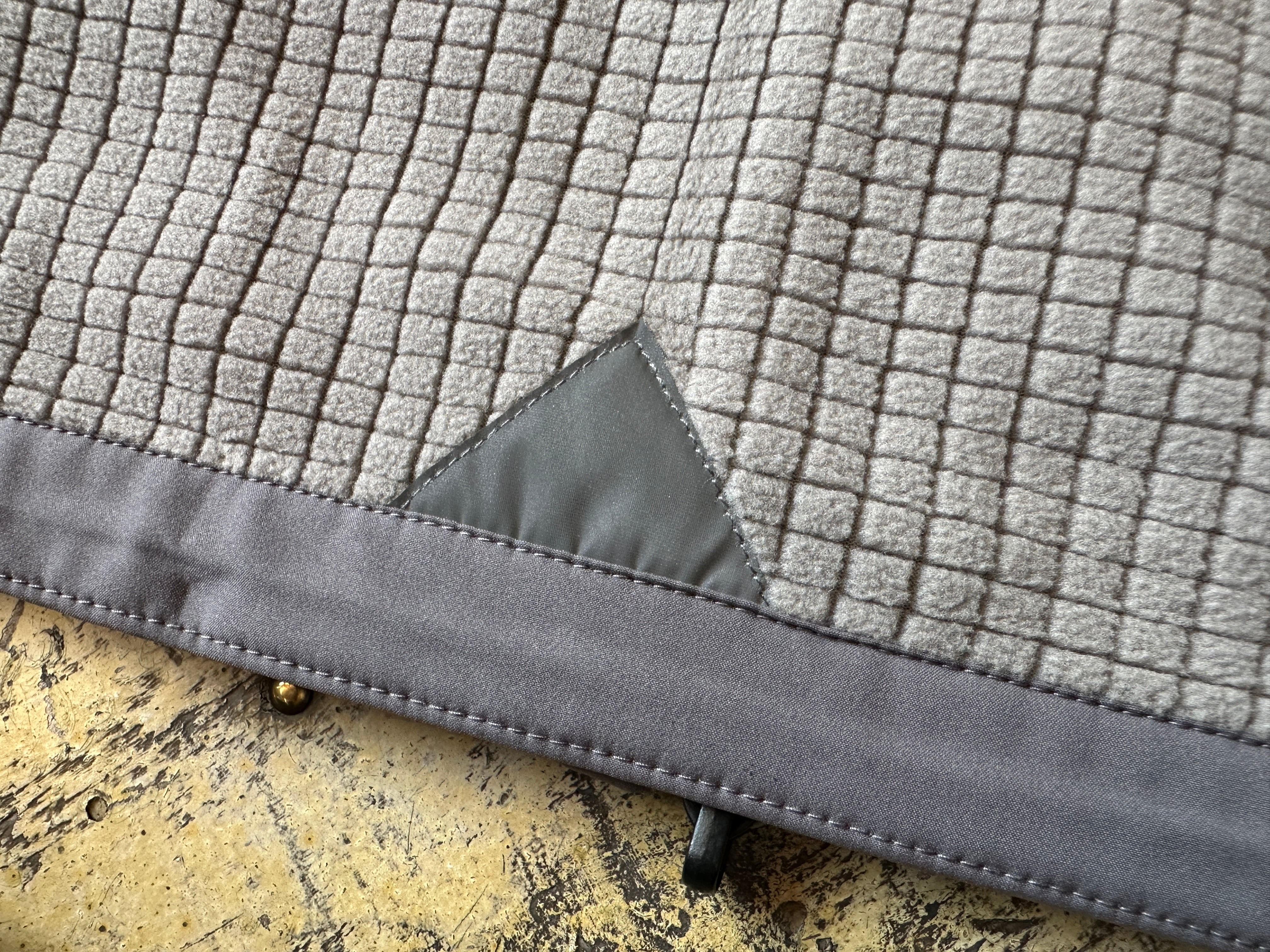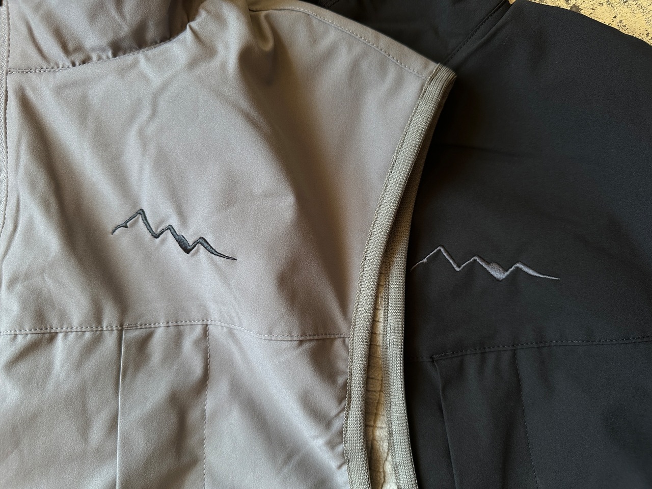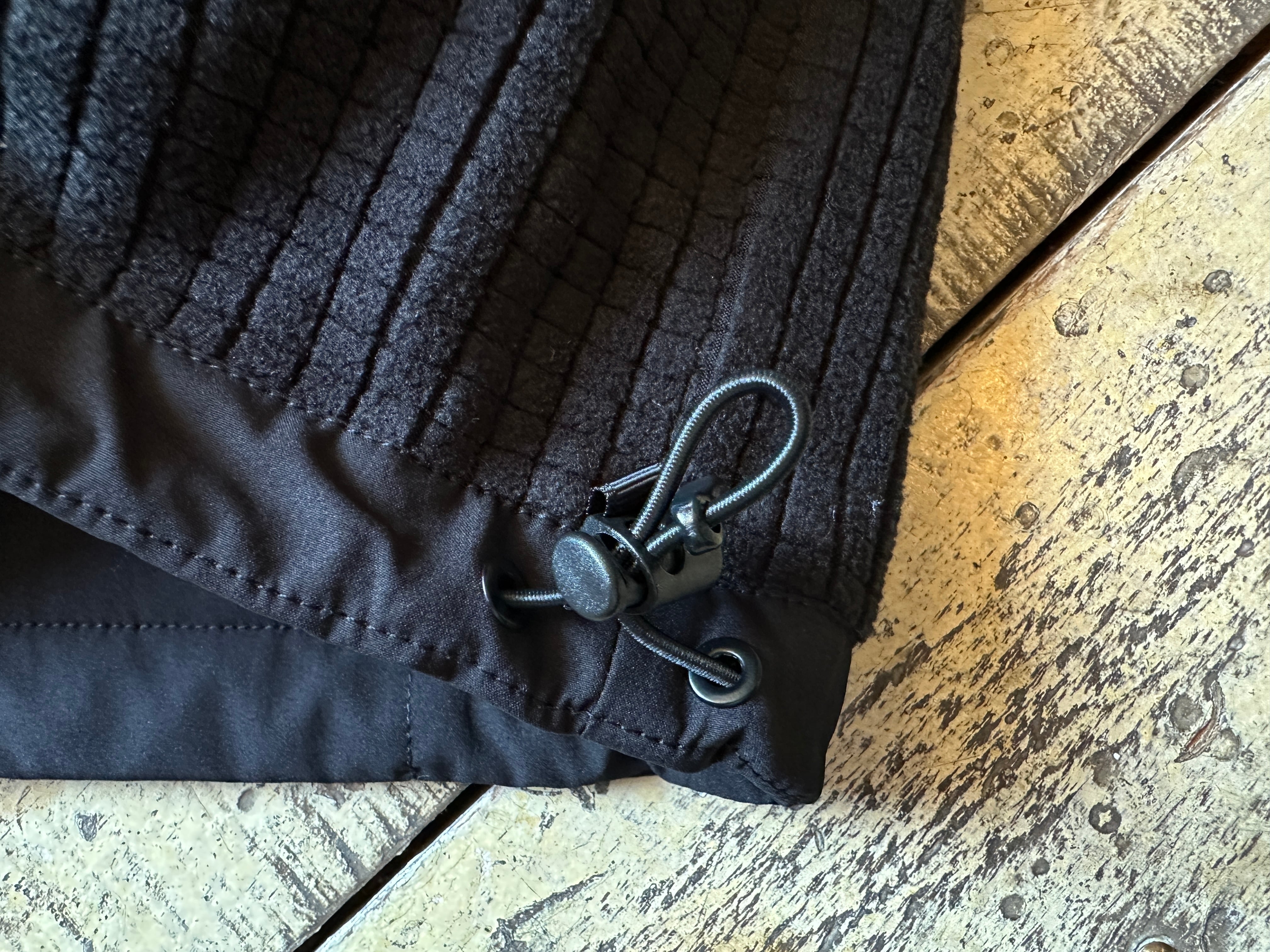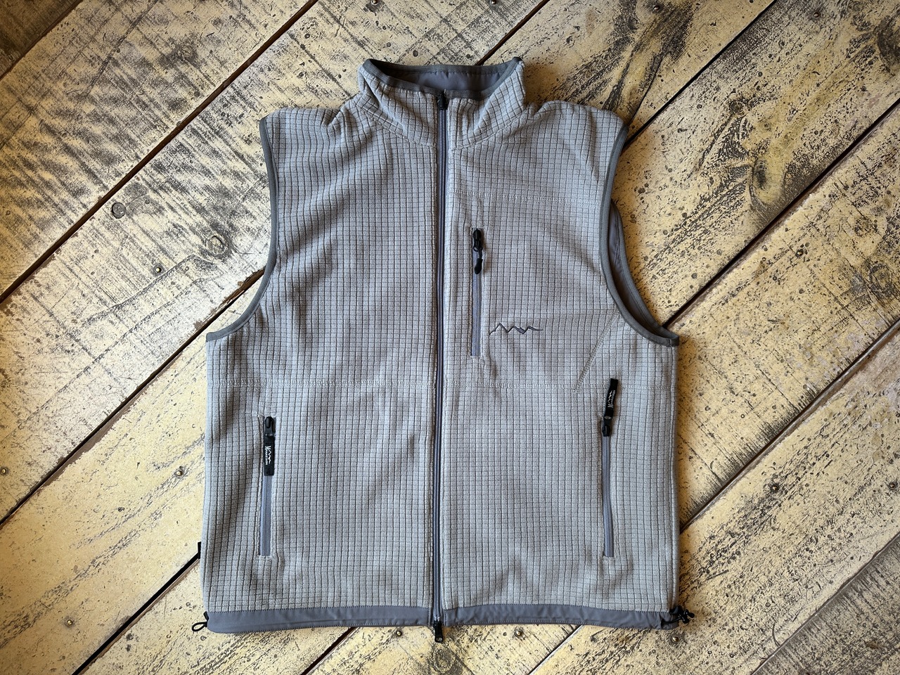 ・保温性、通気性、速乾性を兼ね備えたオリジナルのグリッド(格子)状のフリース素材。保温性は勿論だが、特に通気性の高さに優れた素材なので、蒸れにくく、ミッドレイヤーに適した素材。それとナチュラルストレッチの効いたナイロン素材とのリバーシブル仕様。