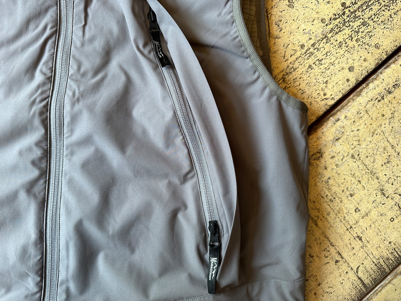 ・少し肌寒い?位の時期にはアウターとし、寒暖差の激しい時期などには、脱ぎ着する事によって調整可能なインナーベストとしても着れる、非常に使い勝手の良いアイテム。