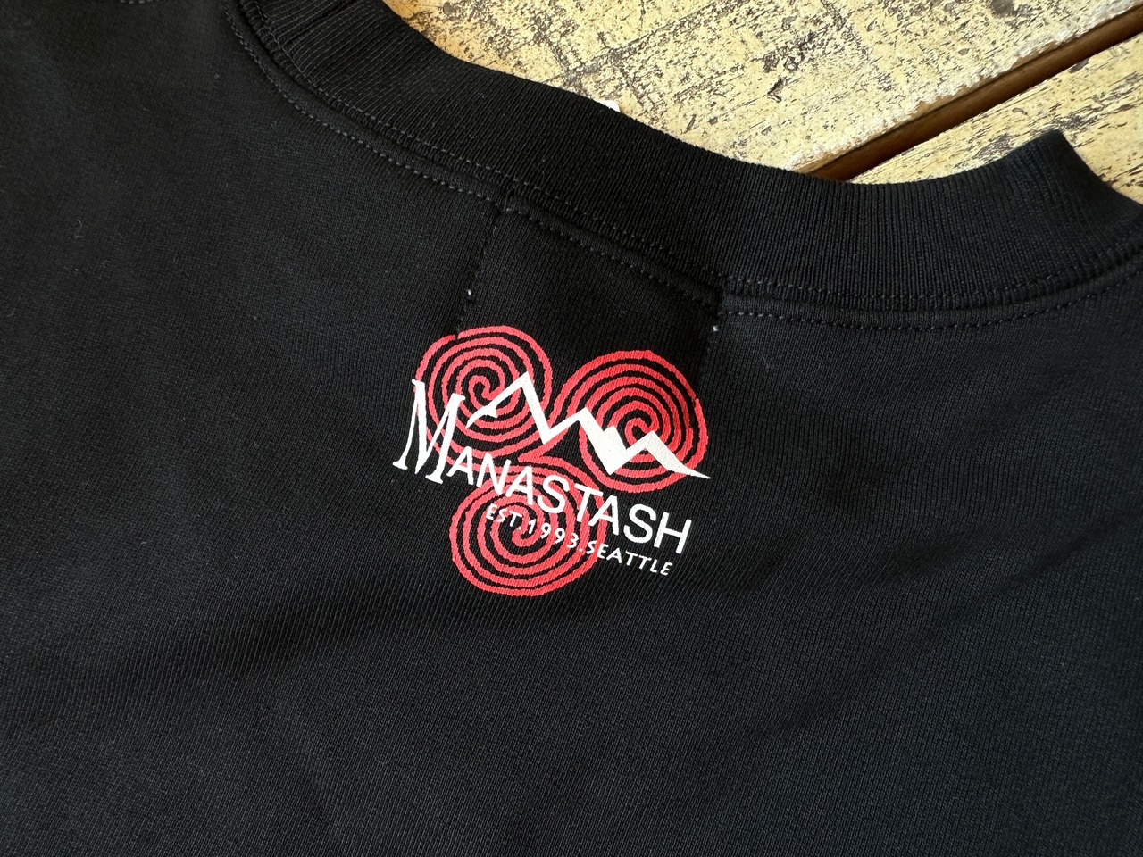 背中には、こちらもお馴染みのSLAP LOGOにMANASTASHのロゴを重ねたグラフィックが入る。
