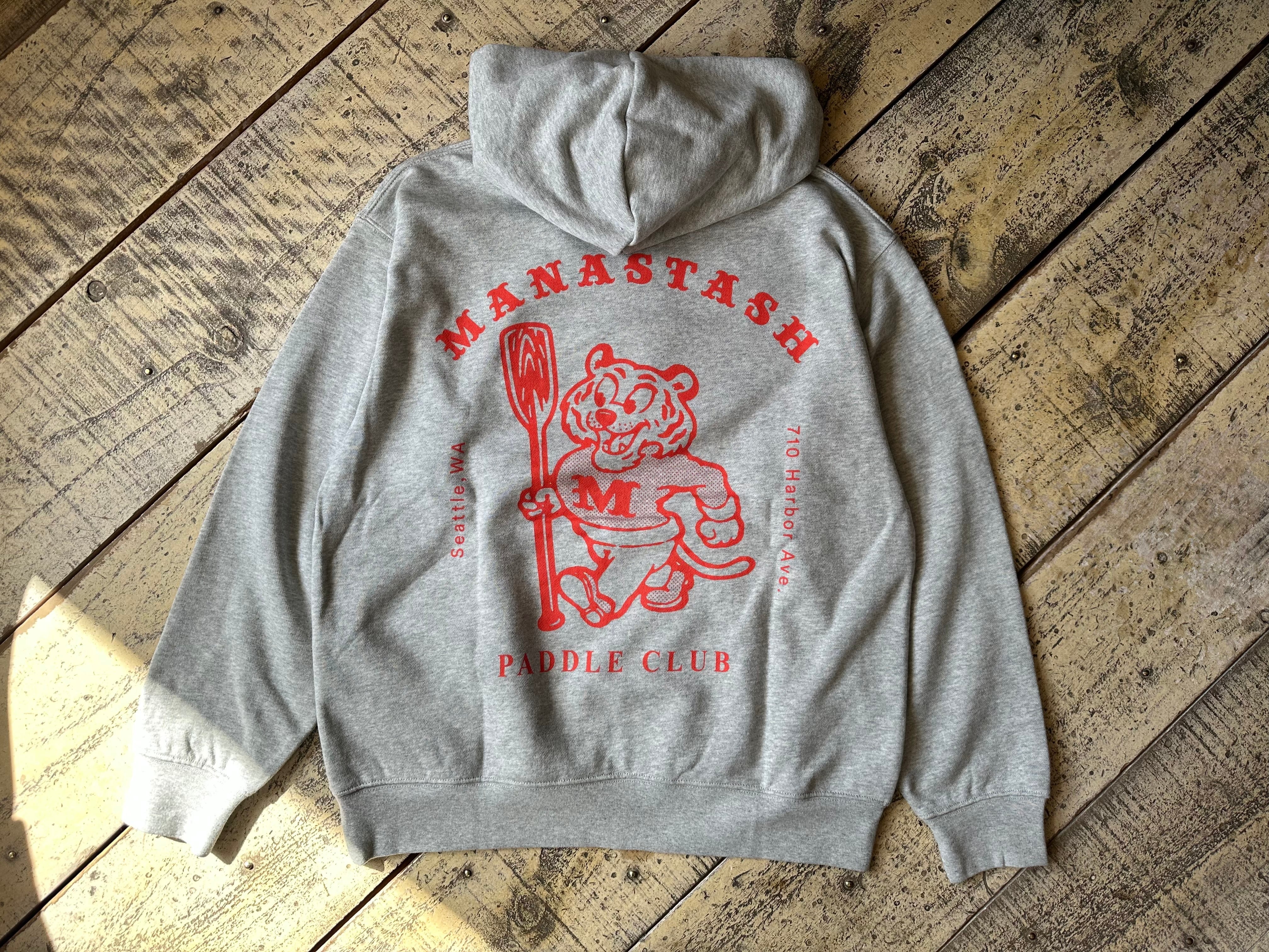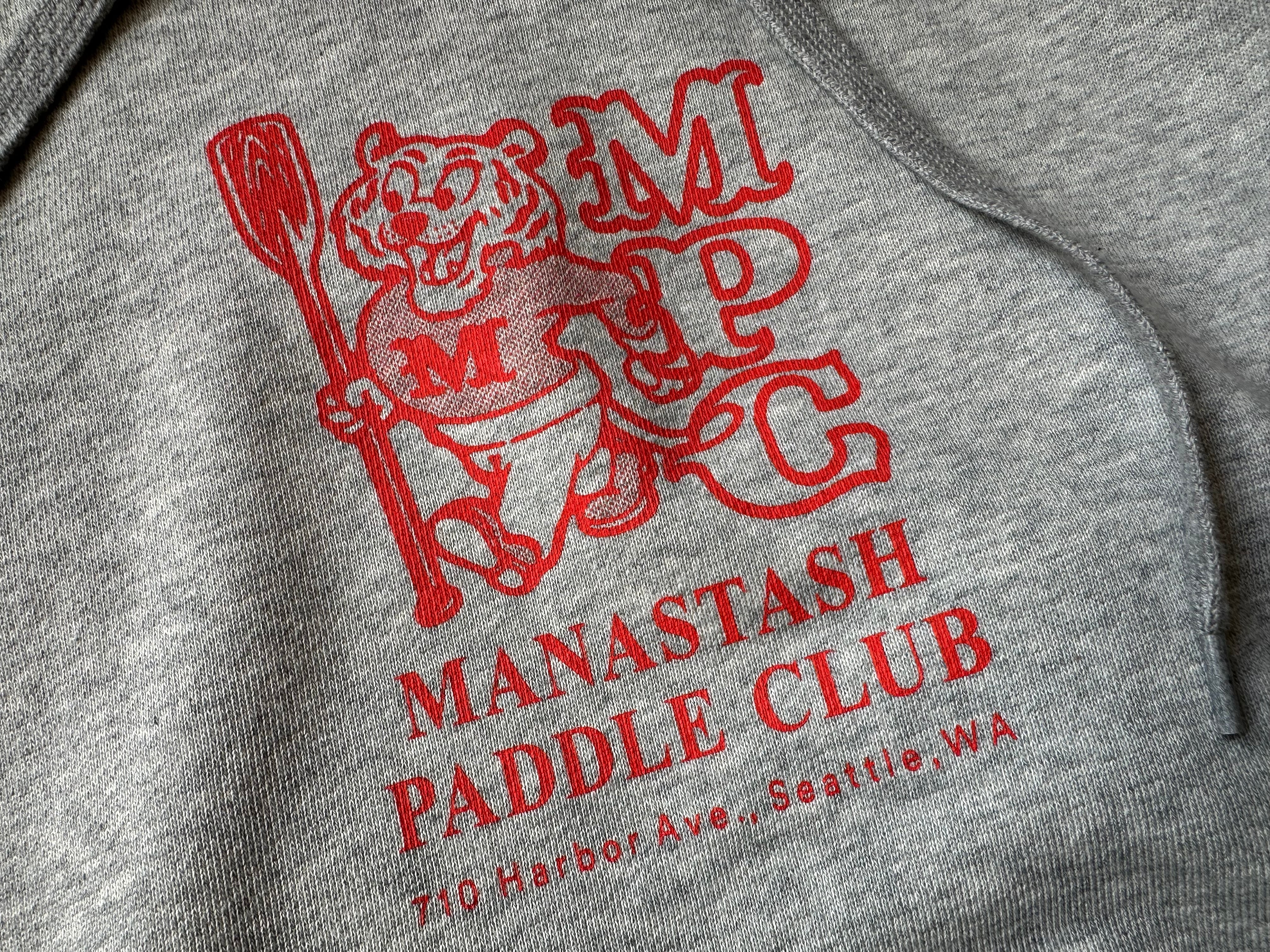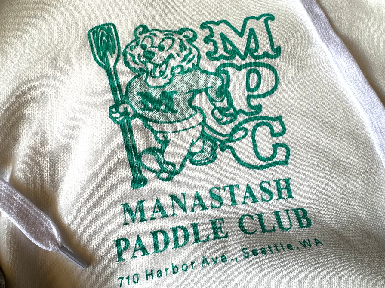 ・架空のカヌーチーム【MANASTASH PADDLE CLUB】のチームパーカー、をイメージしたグラフィック。MANASTASHで好評な、動物キャラを採用