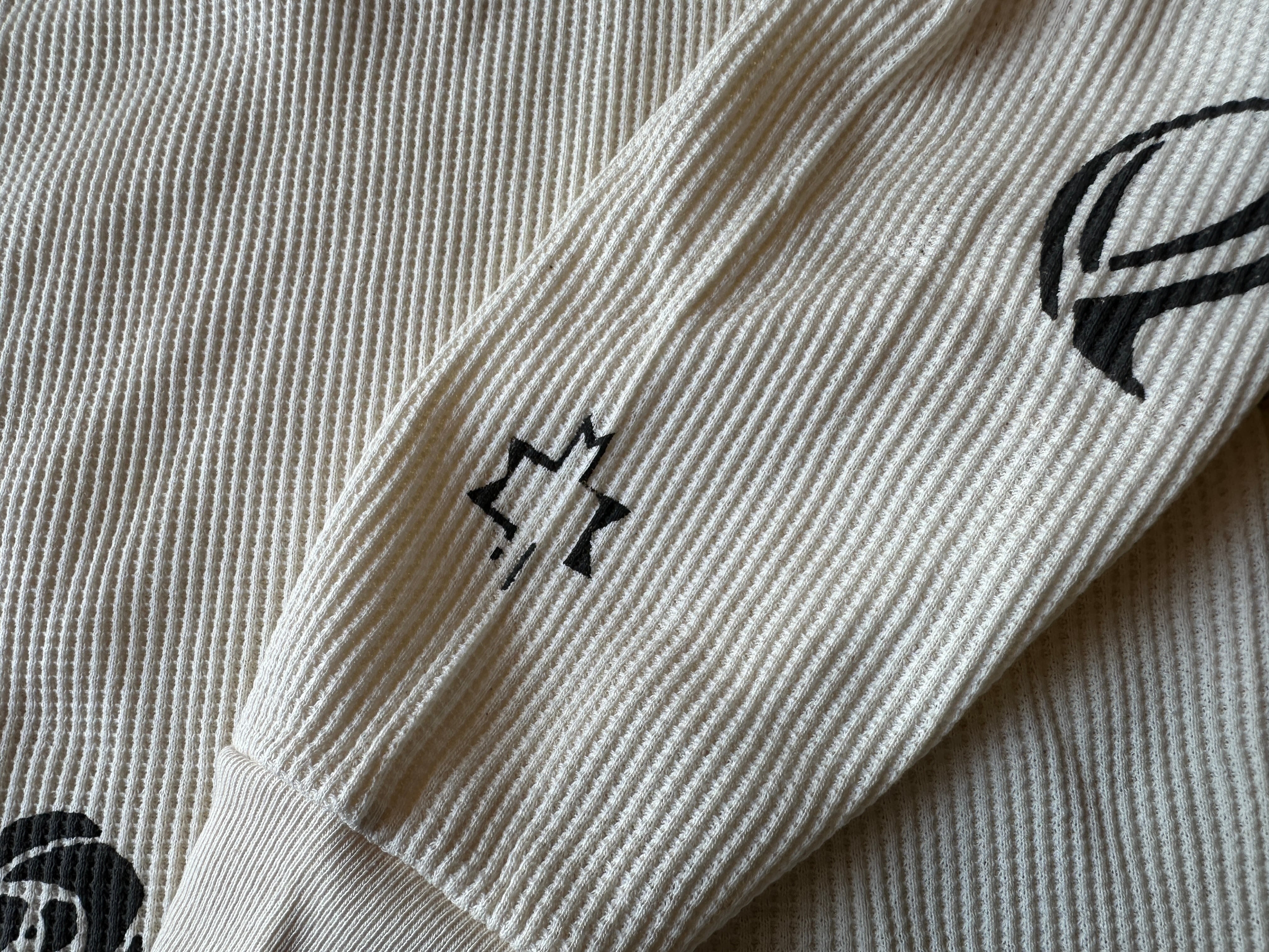 ブランドのロングセラーアイテムであるオーガニックコットン・サーマル・ブランケットのワッフル生地を使用した、日本代理店別注のサーマル・ロングスリーブ・Tシャツ。さらっとしたタッチでありながら温もりを感じ、包み込まれるような着心地が特徴です。