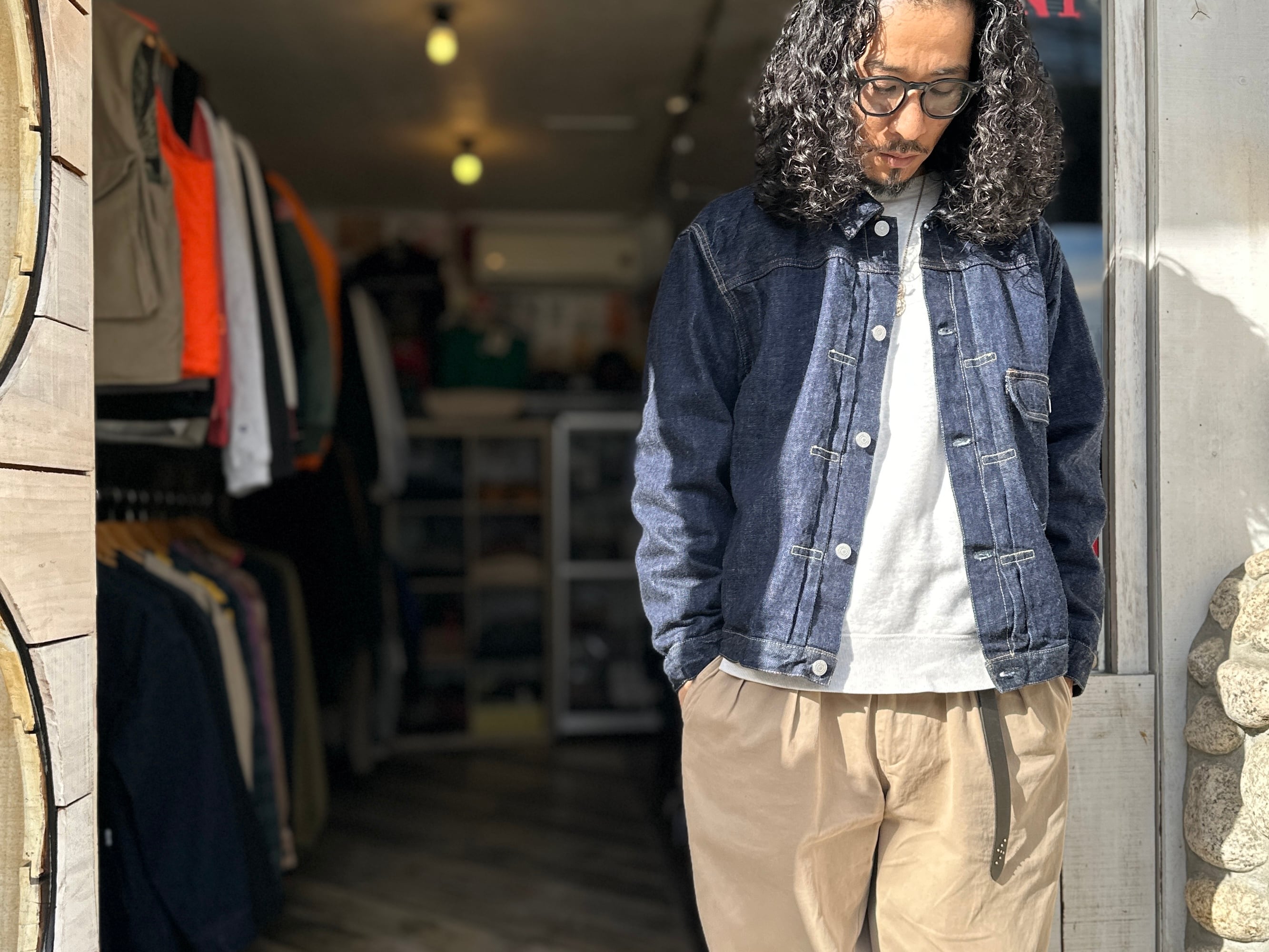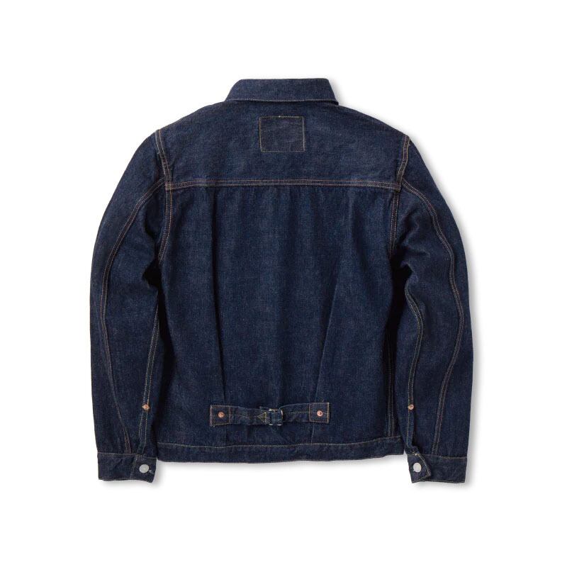 コチラのタイプはワークウエアとしての機能性が重視されているモデルとなり、プリーテッドブラウスからポケットにフラップがつくことによりGジャンの原型となったファースト。このアクションプリーツこそが機能性が求められるワークウエアの象徴で、腰に付いたシンチバックなど機能美と呼ぶにふさわしいディテールがいまでもデニムフリークを虜にしています。真のデニム好きからも支持の高いアイテムとなります。シルエットにややゆとりを持たせています。