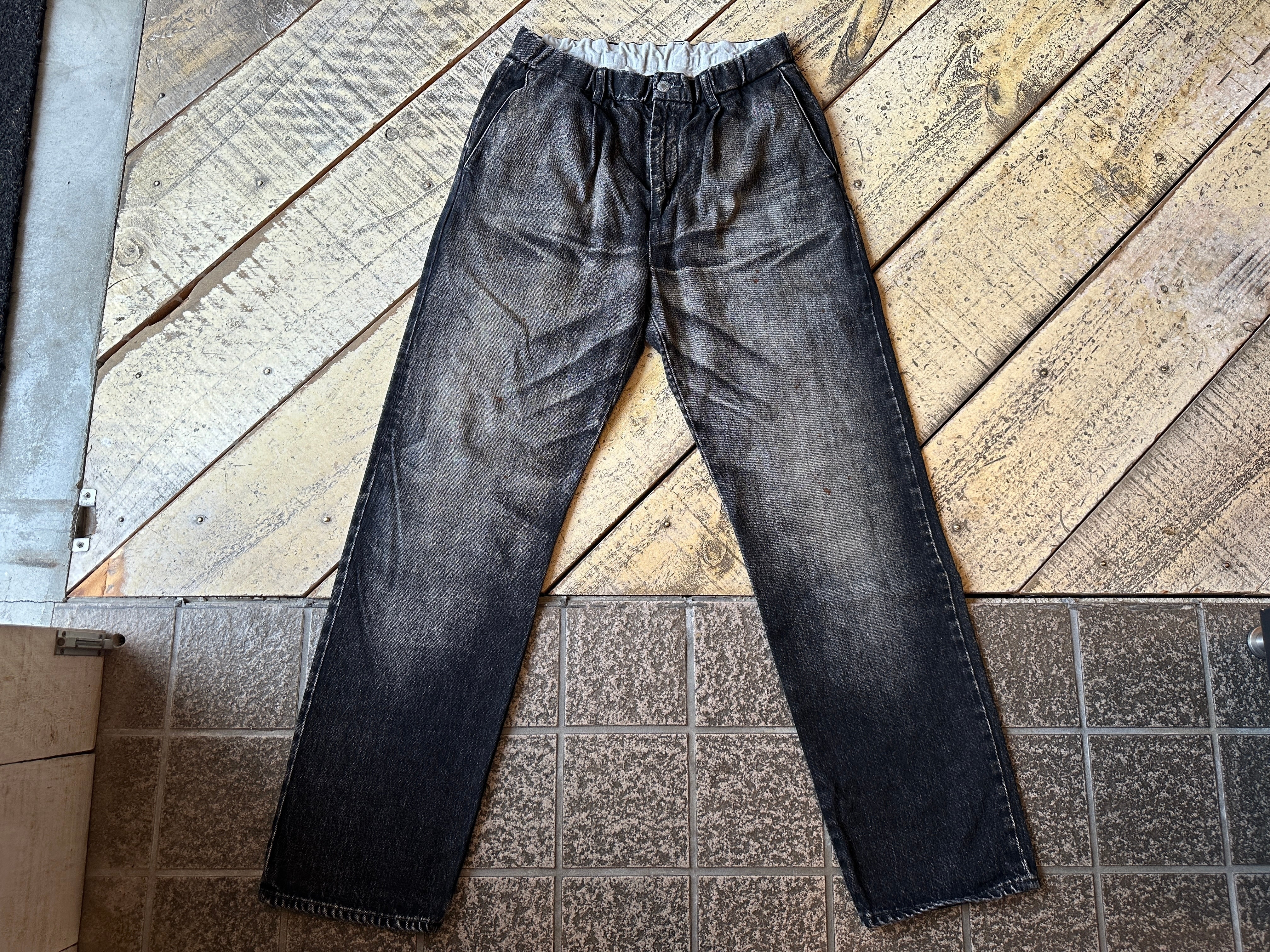 オリジナルセルビッチデニムを使用したスラックスデニム、「Gentle Pants」の加工モデル。