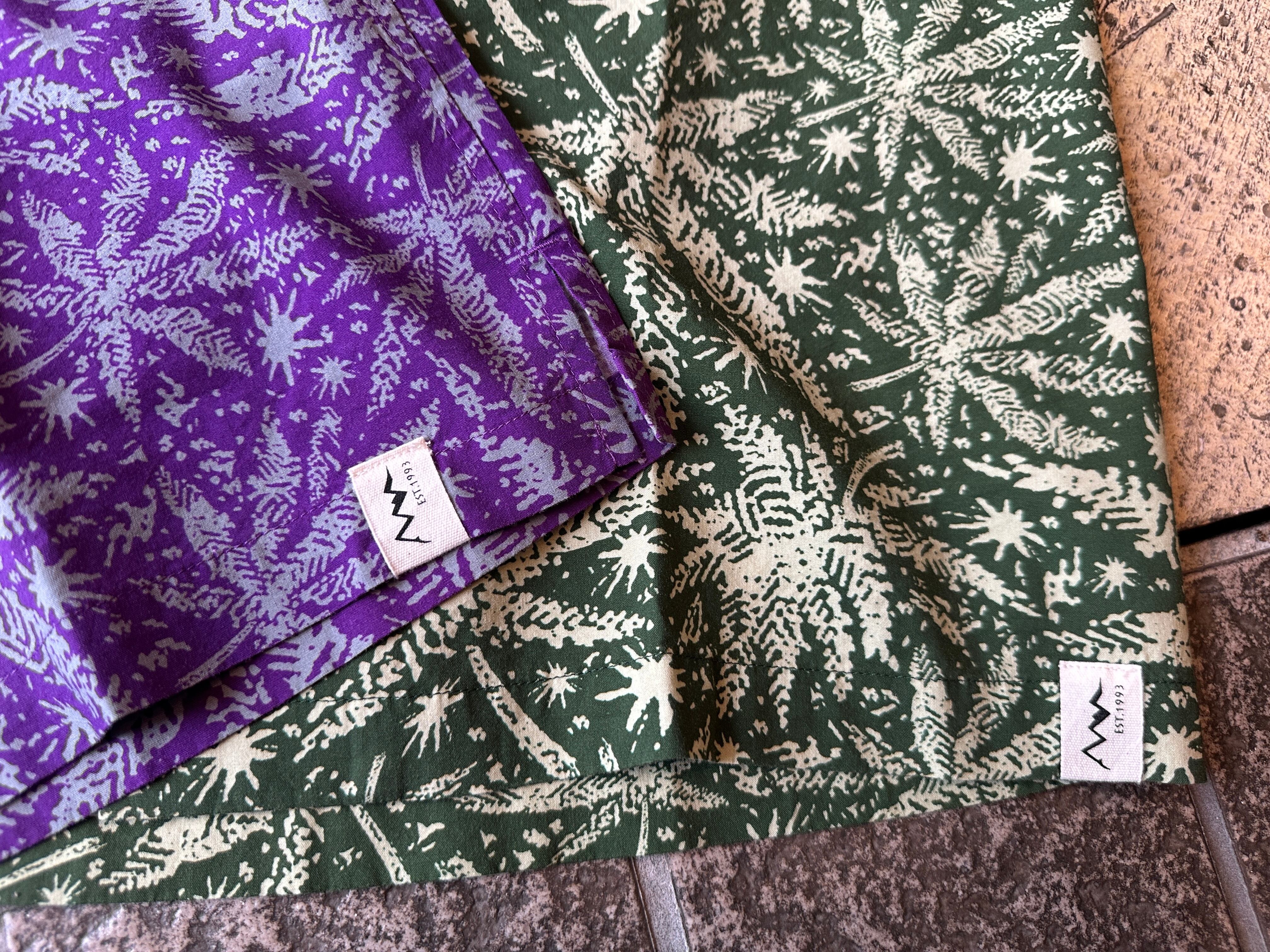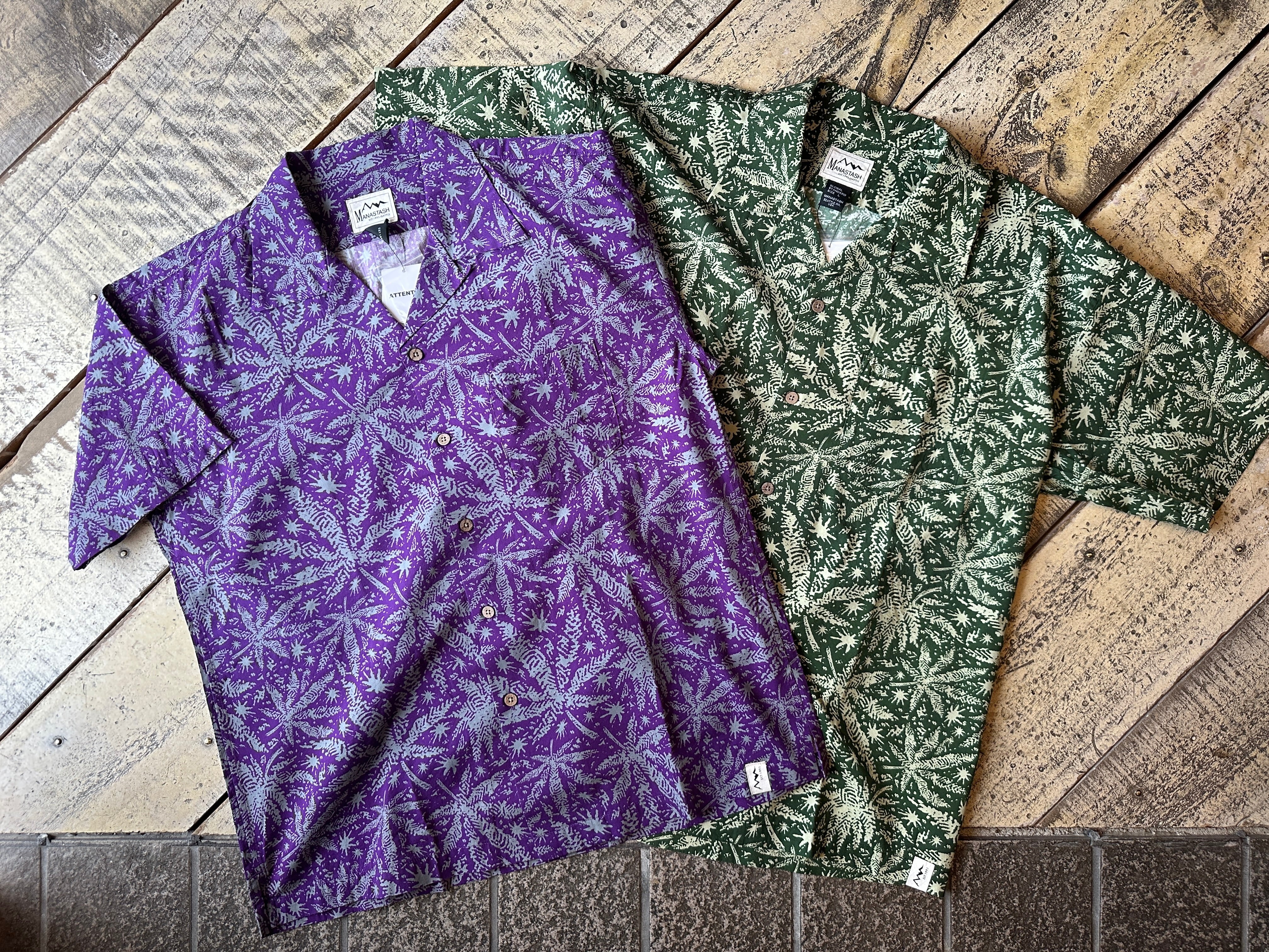 Manastashの原点であるヘンプを総柄に落とし込んだアロハシャツ。 コットンレーヨンで着やすく扱いやすい素材。