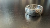 銀貨の素材はシルバー900で、950や925とは異なり、コインシルバー特有な質感なので経年変化も期待出来ます。ハンドメイドならではの味わいや温もりをしっかりと感じられるリングです。