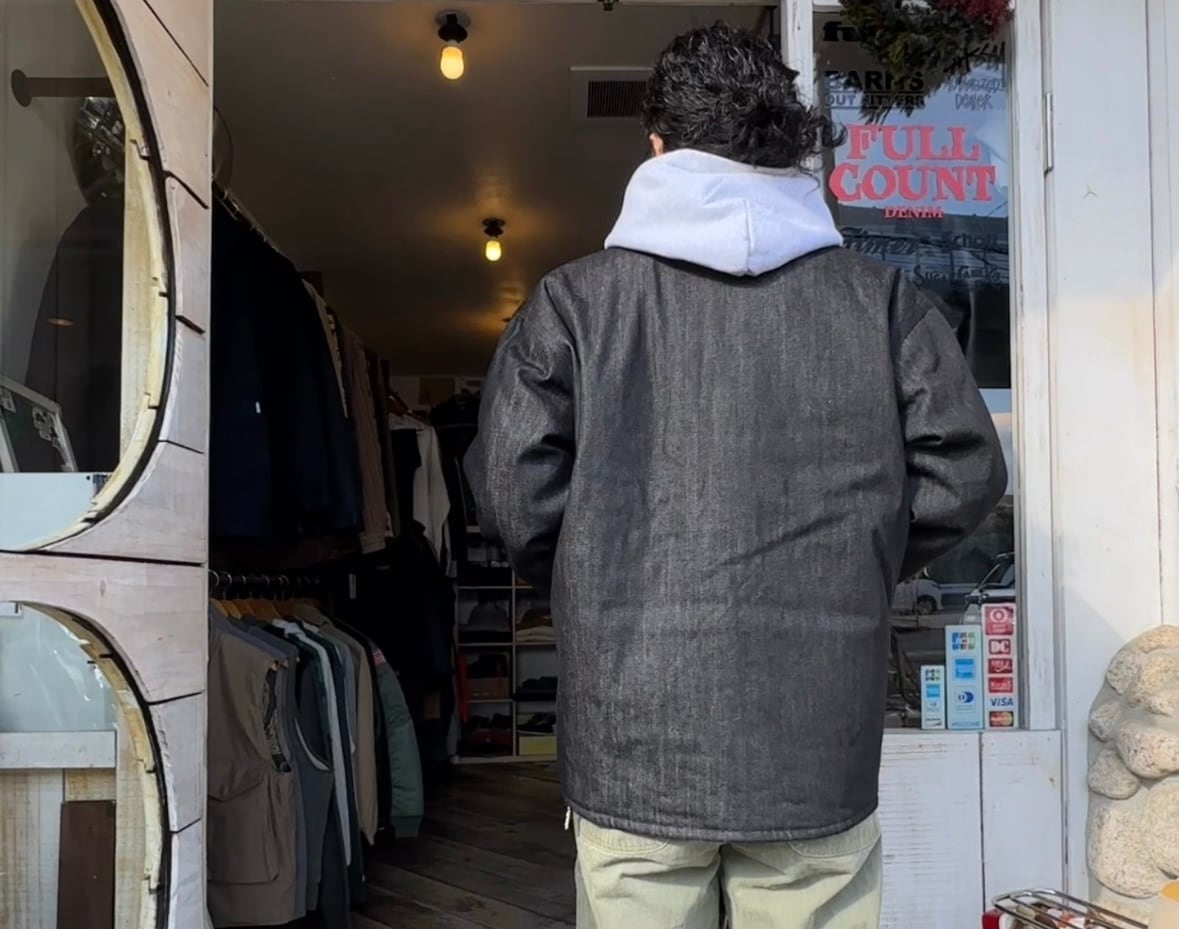 素材は12OZデニムを使用し、タフさと着やすさを両立。裏地にはブランケット風のプリントを施し、中綿を入れたモデルとなっているので、見た目のキャッチーさと温かくて軽いを両立したおすすめの商品です。